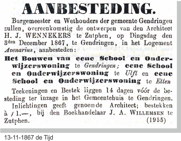 1867: BOUW VAN 3 SCHOLEN EN 3 ONDERWIJZERSWONINGEN