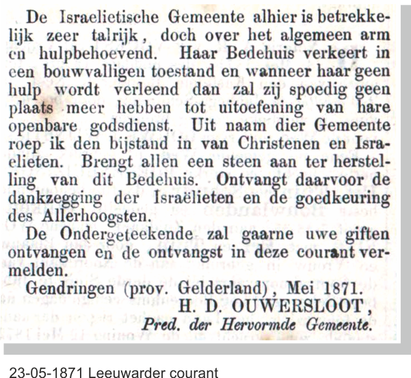 1871: OPROEP OM BIJSTAND VOOR DE ARME JODEN IN GENDRINGEN