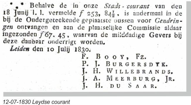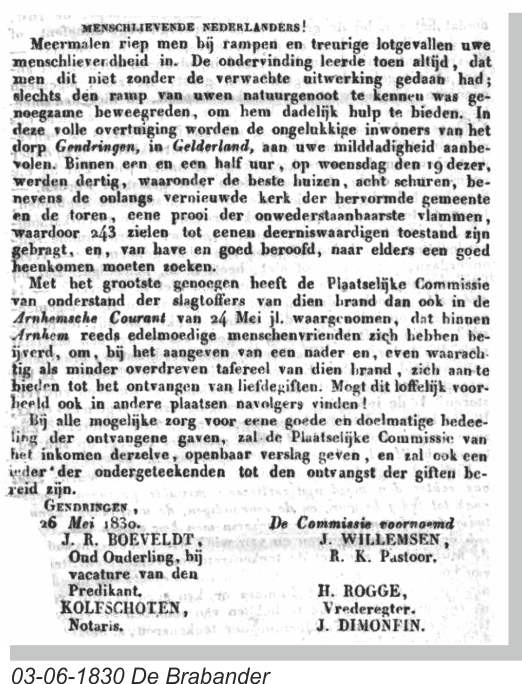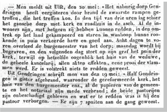 GENDRINGEN WERD IN 1830 GETROFFEN DOOR EEN ENORME