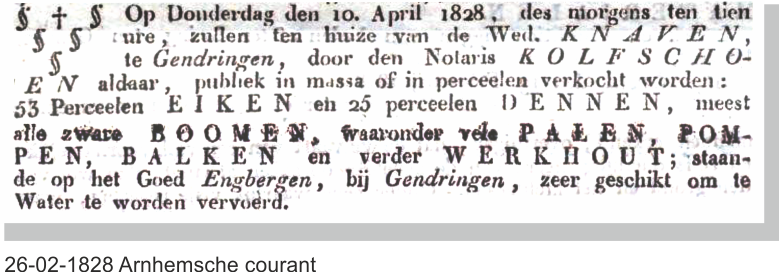 OP HET EEUWENOUDE BERICHT HIERONDER STAAN KASTEEL 'DIEPSTEGEN', 'DOORVOORST' EN 'ENGBERGEN' VERMELD.