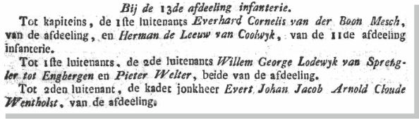 1798: W. B. de Bruen van Engbergen Gepensioneerd Capitein